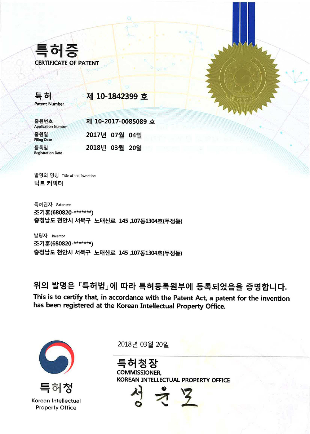 This is a registration certificate that has been recognized for its expertise.